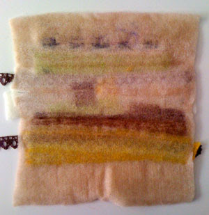 Because all of the needle punching was done from the top down, the top design can be seen on the bottom side of the felt, when it is finished.